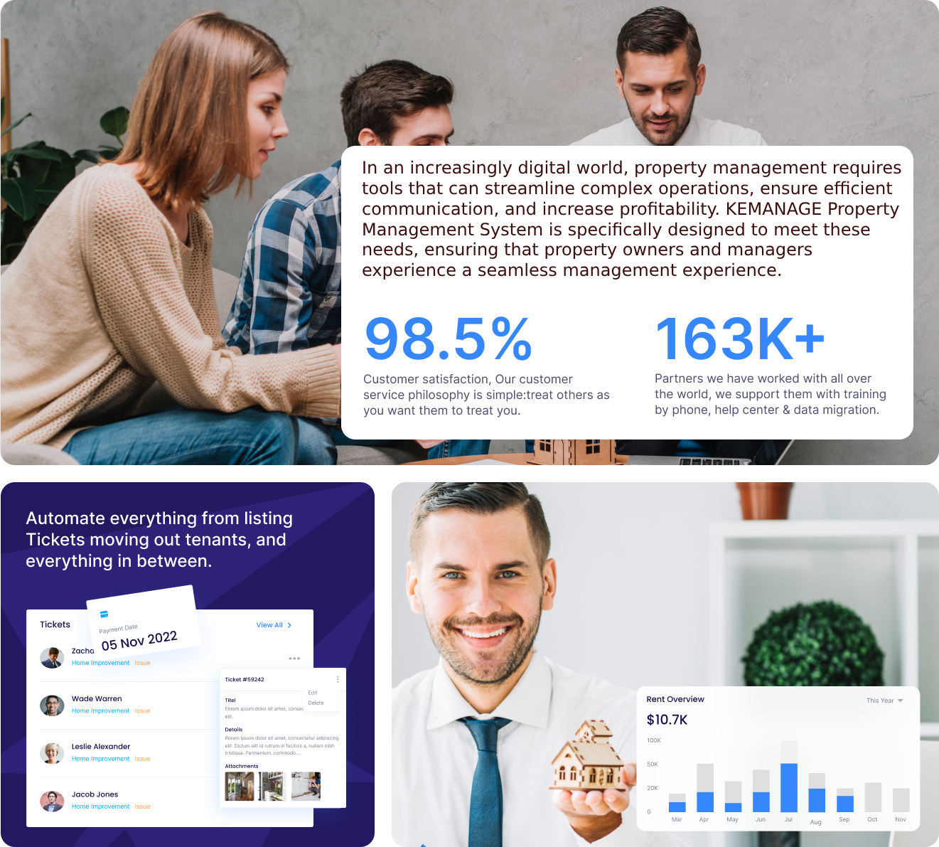 "KEMANAGE has streamlined our property management processes. The ability to manage multiple properties from one dashboard and communicate efficiently with tenants and maintainers has significantly improved our operations."
