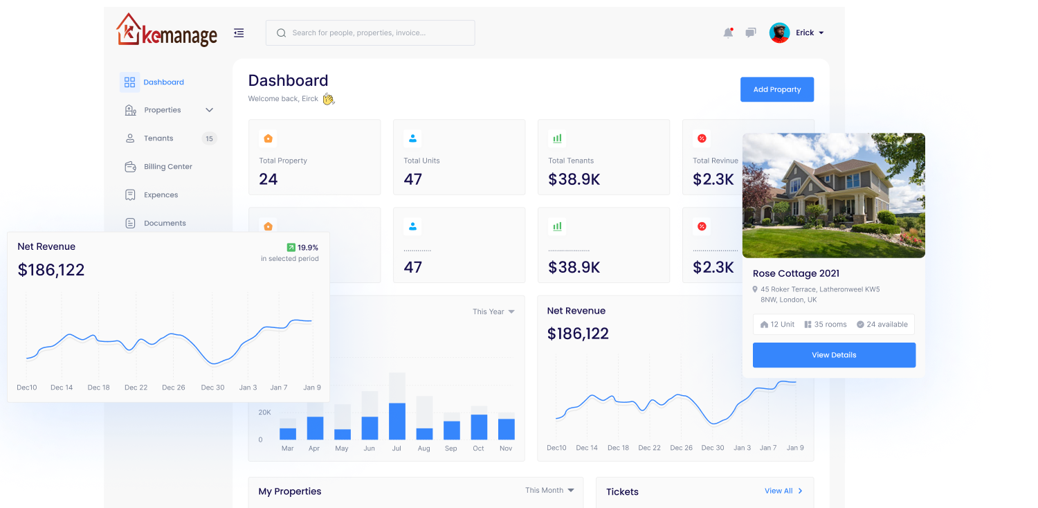 KEMANAGE Property Management System streamlines the day-to-day operations of property owners and managers. With features like online rent payments, maintenance requests, and lease tracking, this software makes it easy to manage multiple properties from one centralized platform. Say goodbye to manual processes and hello to increased efficiency and profitability with our KEMANAGE property management system. Our system has three different panels – Owner, Maintainer, and Tenant.